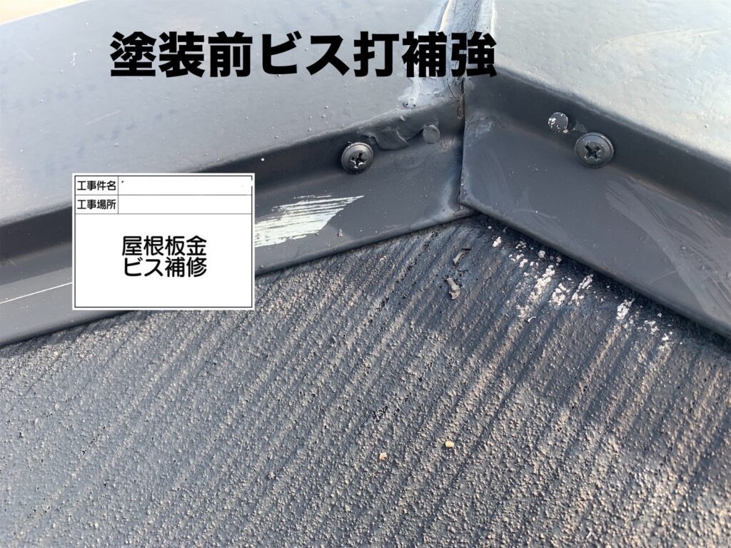 棟の板金もゆるんでいましたので、パッキンビスにて補強ししっかり留めてからの塗装をしました。